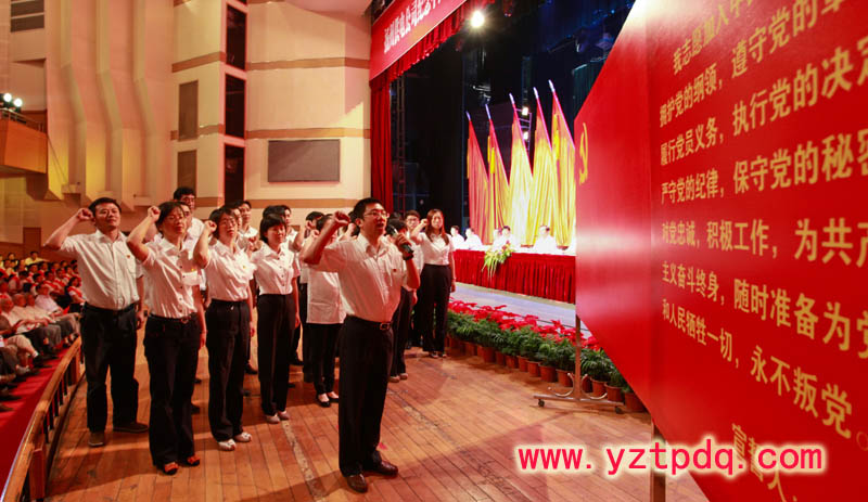 2012年6月28日上午,“我志愿加入中國共產黨,擁護黨的綱領……”揚州供電公司管理第三黨支部的黨員在黨支部書記的帶領下,高舉右拳,佩戴黨徽,莊嚴宣誓。公司工會主席以普通黨員的身份參加了重溫誓詞活動。