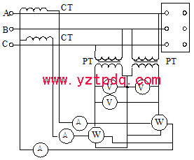 圖1-3 三相變壓器空載試驗的間接測量