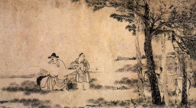 在故宮博物院眾多藏品中,有一幅引人注目的《云中送別圖卷》。畫面上一人峨冠溥帶,獨坐松坡之上,一僮子侍后。兩人手展畫卷,峨冠者凝神而視。樹下一僮子手牽鞍馬,整裝待發。人物形神兼備,衣紋線條流暢。左方叢林石壁,筆法粗放,墨氣淋漓。這幅兼工帶寫的紙本墨筆畫,收人了《中國繪畫史圖錄》,作者就是明代著名畫家陶成。