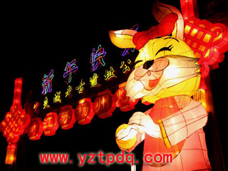 2006年春節(jié),揚州工藝廠設(shè)計制作的一批傳統(tǒng)彩燈被送到了寶島臺灣。記者了解到,在這批花燈中,“百犬迎春”中一條大麥叮犬,長10米,高9米,體重達(dá)10噸,運用電腦科技制造出聲、光電動效果,會搖頭、昂首、動耳、擺尾,動作自然,會講十五種語言。及至今年,揚州花燈已連續(xù)6年春節(jié)為臺灣佛光山寺制作并展出了一批大型彩燈。
