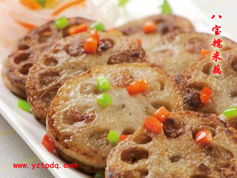 糯米藕是很多女孩的心頭之好,既可當零食,也可以上得酒席。在揚州,一年四季都能吃到八寶糯米藕,不過,倘若說好吃,還得數用寶應出產的蓮藕來制作,才能達到入口酥軟、香糯、甜潤、清香的感覺。制作這道菜的秘訣在于一定要用成年老藕。