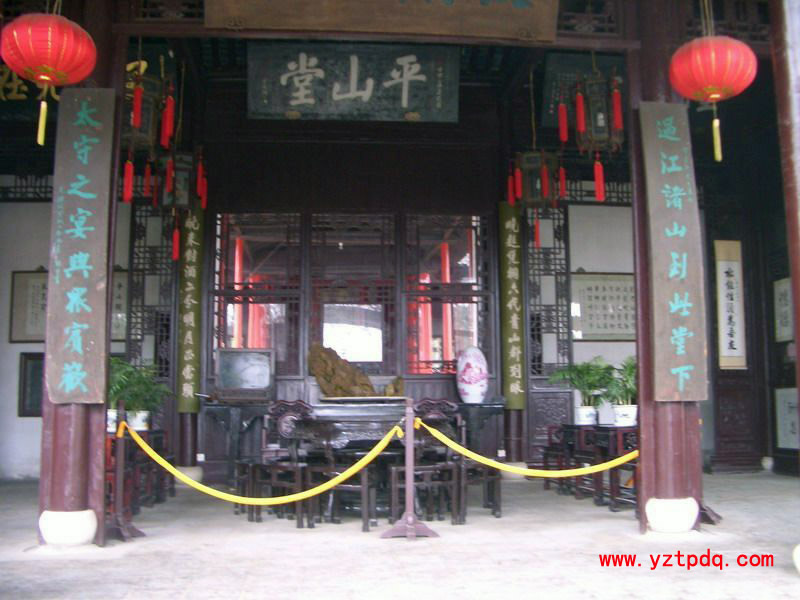 大殿西側(cè),有“仙人舊館”門額,人們即是有名的平山堂。平山堂平山堂是北宋大學(xué)家歐陽(yáng)修任揚(yáng)州太守時(shí)所建。堂前花木扶疏,庭院幽靜,憑欄遠(yuǎn)眺江南諸山,恰與視線相平,“遠(yuǎn)山來與此堂平”,故稱“平山堂”。堂前有聯(lián)曰:“過江諸山到此堂下,太守之宴與眾賓歡”,是歐陽(yáng)修當(dāng)年瀟灑流運(yùn)的生動(dòng)寫照。后來蘇東坡任揚(yáng)州太守時(shí),常來此憑吊,并在后面為歐陽(yáng)建造了“谷林堂”和“歐陽(yáng)河”。谷林堂取自蘇東彼“深谷下窈窕,高林合扶疏”的詩(shī)句。歐陽(yáng)祠內(nèi)有歐陽(yáng)修石刻畫像,供人憑吊。